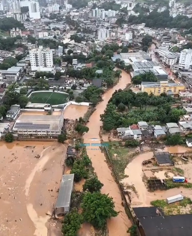 O cenário é de destruição. O Rio Ubá atingiu a marca histórica de 7,82 metros, transbordando e alagando bairros inteiros. A força da água arrastou veículos, invadiu residências e destruiu estabelecimentos comerciais, paralisando a prestação de serviços essenciais em diversos pontos do município.